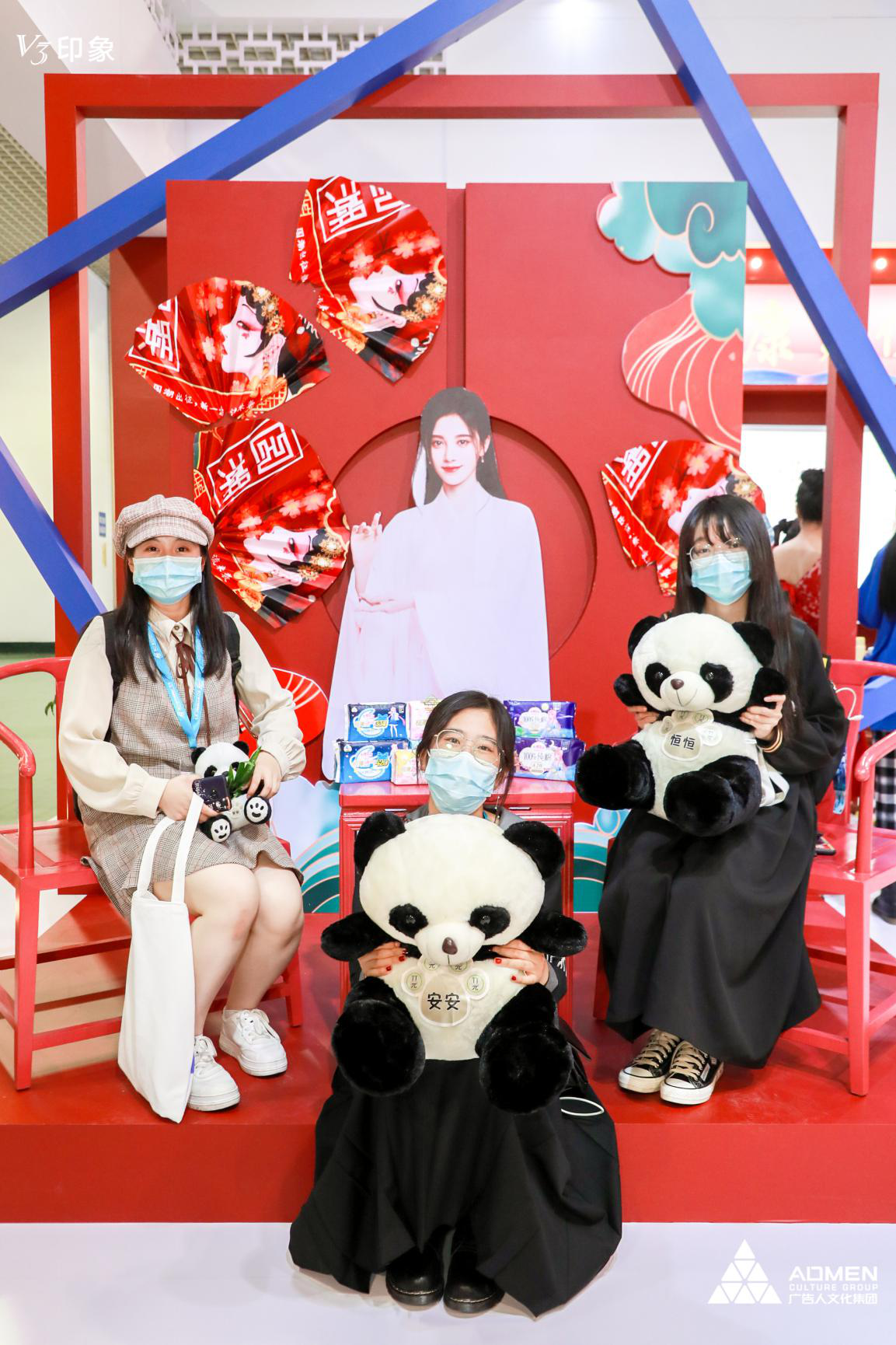 3499拉斯维加斯集团展位的正红布景极具特色,吸引了众多国风爱好者前来打卡,不少汉服小仙女都被熊猫玩偶萌翻了,纷纷合影留念。